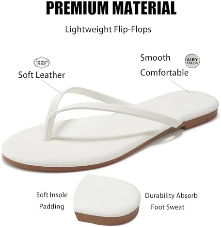 Flip Flops Sandals for Women, Summer Fashion Leather Slippers, Lightweight Comfortable Beach Sandals Slip On Flat Dressy Size 6-10