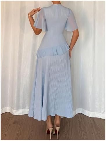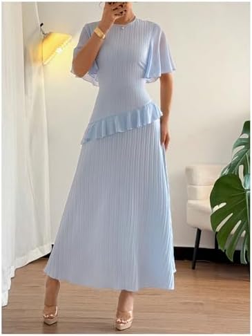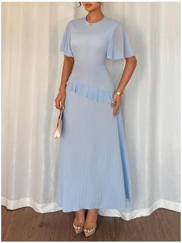 Floerns Women’s Textured Butterfly Sleeve A Line Dress Ruffle Trim Formal Party Long Dresses