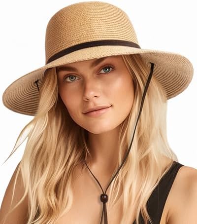 FURTALK Womens Wide Brim Sun Hat with Wind Lanyard UPF Summer Straw Sun Hats for Women