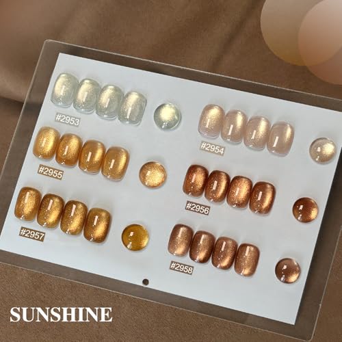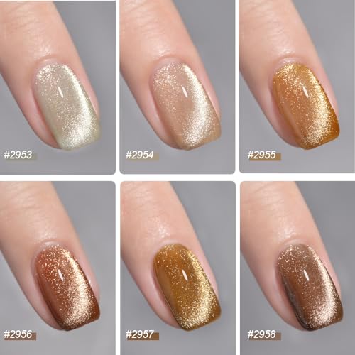 GAOY Glitter Cat Eye Gel Nail Polish Set with Magnet, Gold, Brown, Sliver Holographic Cat Eye, Salon Gel Manicure and Nail Art DIY at Home, Sunshine