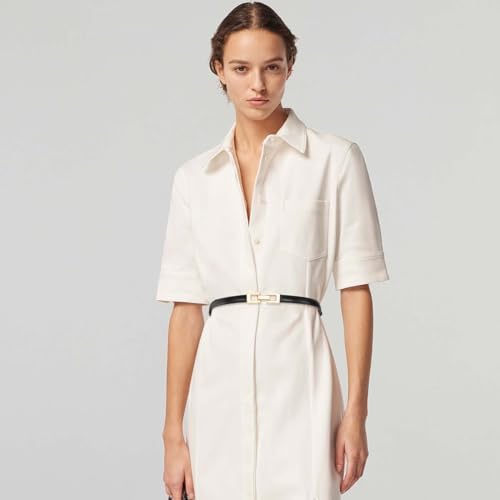 Glamorstar Skinny Belts for Women Thin PU Leather Waist Belt with Gold Buckle for Dresses