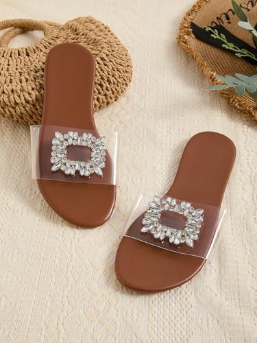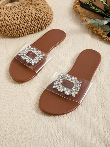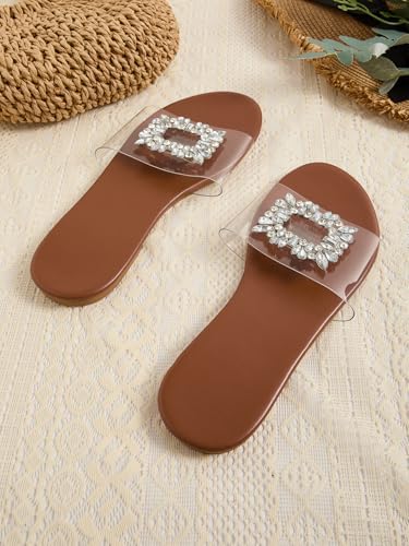 GORGLITTER Women’s Clear Sandals Rhinestone Flat Dress Open Toe Slip On Slide Sandal