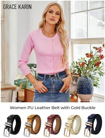 GRACE KARIN Women Leather Belt for Dresses Jeans Pants Waist Belt with Gold Buckle Medium PU Leather Belt