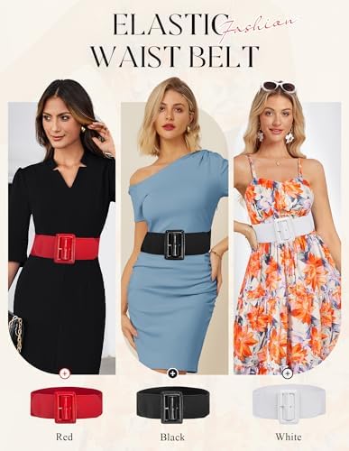 GRACE KARIN Women’s Stretchy Belt 1950s 3 Inch Wide Elastic Belts