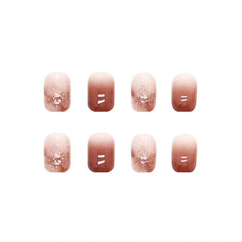 24Pcs Fall Glitter Brown Fake Nails Gradient Press on False Nails Cute Artificial Nails for Women Girls Nail Art Decorations