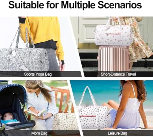 Gym Bag for Women, Cute Duffle Bag, Quilted Duffle Bag for Travel, Floral Duffle Bags, Weekend Bag with Zipper Pocket Dance Bag Organizer