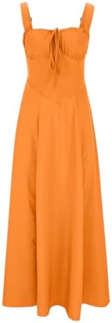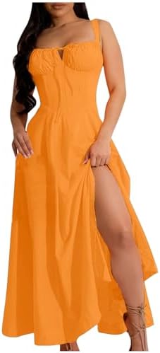 HGps8w Sexy Low Cut Square Neck Vacation Dress for Women Casual Sleeveless Tiered Flowy Party Maxi Sundresses