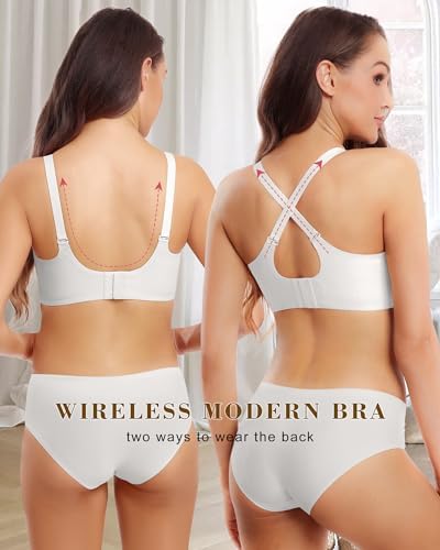 HORISUN Bras for Women No Underwire V Neck Scalloped Wireless Push Up Bra with Soft Support Comfort Seamless Bralettes