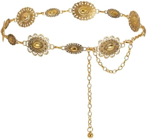 JASGOOD Western Metal Concho Belt for Women Cowgirl Waist Chain for Women Dress Pants