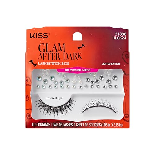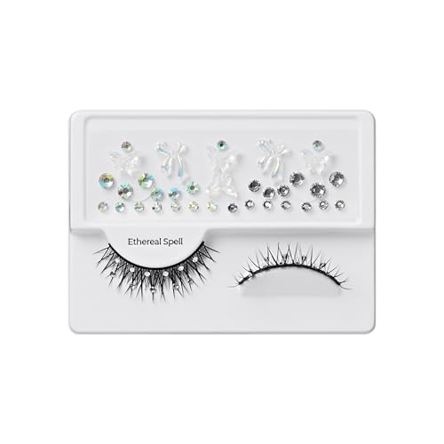 KISS Halloween Eyelashes ‘Ethereal Spell’, 12mm, Natural Volume False Lashes with Jeweled Accents & Butterfly Gem Stickers, Reusable Strip Lashes, No Damage To Natural Lashes, Vegan & Cruelty-Free
