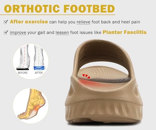 KuaiLu Womens Recovery Sandals With Comfortable Plantar Fasciitis Support,Ladies Orthotic Open Toe Sport Slides Thick Cushion Reduces Stress on Feet,Joints & Back Post-Exercise