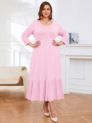 LARACE 3/4 Sleeve Dresses for Women Plus Size Casual Long Maxi Fall Winter Dress with Pockets