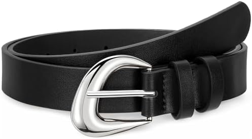 Leather Belt for Women Fashion Ladies Waist Belt with Silver Buckle for Jeans Pants Dress