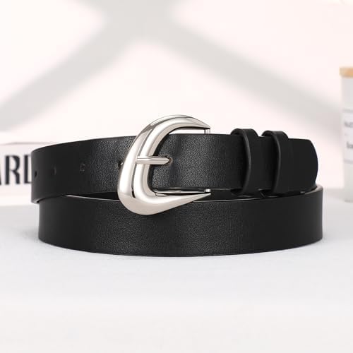 Leather Belt for Women Fashion Ladies Waist Belt with Silver Buckle for Jeans Pants Dress