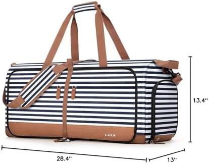 Lekesky Foldable Travel Duffle Bag for Women, 80L Large Duffel Bag with Separate Shoes Compartments & Straps, Carry On Weekend Bag for Women, Hospital, Overnight (Blue Stripes)