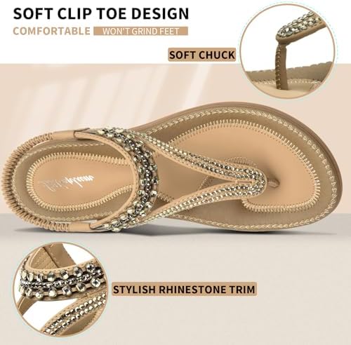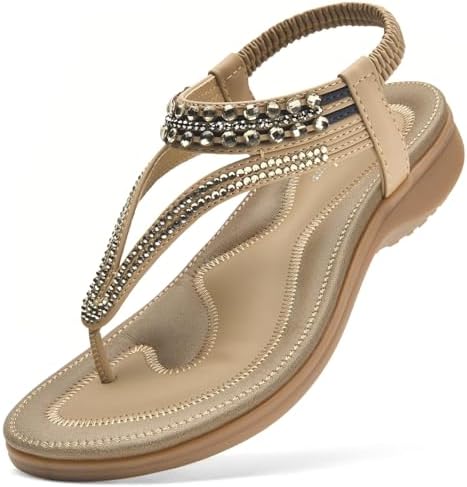 Littleplum Womens Sandals Arch Support Slingback Rhinestone Dressy Sandals Comfort Summer Shoes Ankle Strap Elastic Flats for Beach Walking