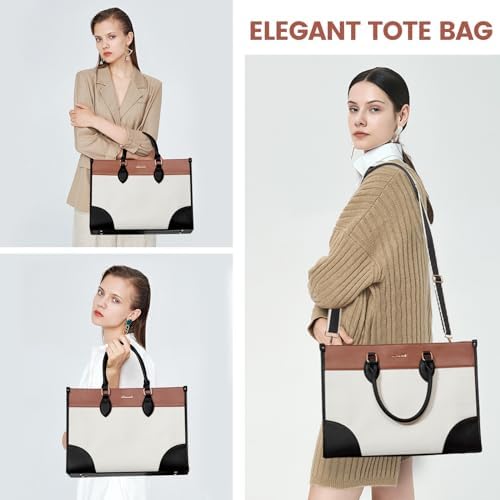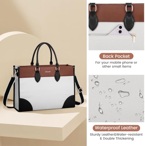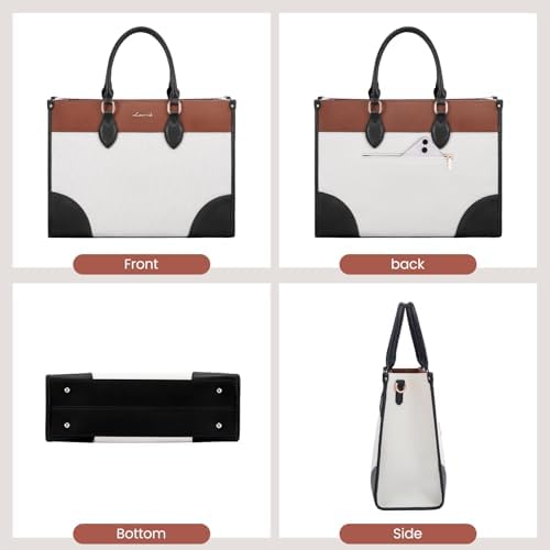 【Elegant Laptop Tote Bag for Women】: The Computer Handbag Shoulder Bag interior is thoughtfully designed with multiple compartments. The laptop pursue built-in padded laptop compartment fits up to a 15.6″ laptop, featuring a thick protective foam pad and a secure velcro strap to ensure optimal protection for your device.
