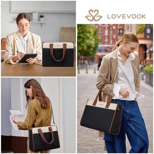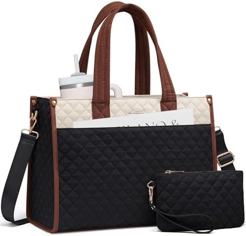 LOVEVOOK Laptop Bag for Women,15.6 Inch Laptop Tote Bag,Quilted Work Tote Bags Women, Professional Computer Business Teacher Tote Bag Office Briefcase Purse,Lightweight Shoulder Travel
