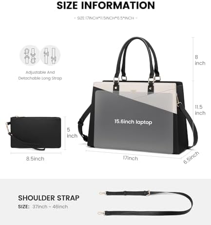 【Perfect Size for Laptop Bag】Dimension of the tote bag is 17″ L * 6.5″ W * 11.5″ H; Weight: 2.58 lbs. The distance from the top handle to the tote bag is 8”. The adjustable shoulder strap is 37 to 46 inches long. It is large enough to keep your daily items organized. Its minimalist and chic appearance makes it suitable for both formal and casual occasions.