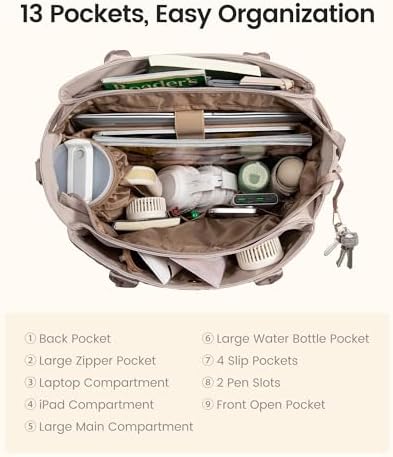 LOVEVOOK Teacher Tote Bag for Women, Quilted Work Tote Nurse Laptop Bag, Large Computer Shoulder Bags with Zipper for Travel