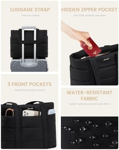 LOVEVOOK Tote Bag for Women, Large Puffer Work Tote Laptop Bag, Lightweight Travel Tote Bag with Zipper Gifts for Women