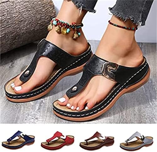 LUWAY Women’s Comfy Orthotic Sandals Solid Color Texture Pattern Women’s Thong Sandals Flat Bottomed Slip On Clip Toe Flip Flops Slider T Strap Sandals,Black,US9/EU41