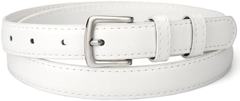 maikun Womens Skinny Leather Belt, Solid Color Pin Buckle, PU Leather Classic Waist Belt for Ladies