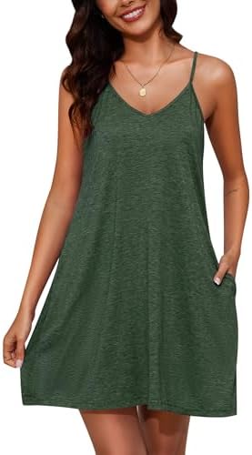 Marvmys Womens Cotton Sleeveless Nightgown Spaghetti Strap V Neck Full Slip Sleep Dress with Pockets