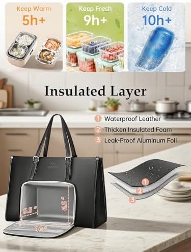 High-Quality & Studry:The laptop lunch box bag for women is made of premium waterproof PU leather and polyester lining, is scratch-resistant and wear-resistant. Reliable zippers and upgraded reinforced stitching make this business bag more sturdy. Thick foam padding inside make this professional office computer bag better protect your laptop from bumps. Keep laptop shoulder bag the computer stable and safe in it, convenient tote bag with lunch compartment