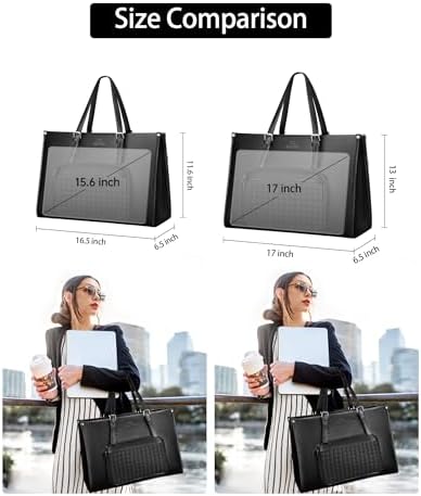 Perfect Size & Practical Design:This laptop tote bag size: 16.5″ x 6.5″ x 11.6″(L*W*H). Insulated lunch compartment of this work bags for women tote professional is 10″ x 6.5″ x 6.5″(L*W*H). Net weight: 2 lb. Extra mesh pocket inside for utensils, napkins and other small items, and easily accessible. The adjustable handle is 9.5 to 11.5 inches long. Top soft handle provides portable carrying experience. Use it as lunch tote bag, computer bag, lunch tote work bag, handbag as you like