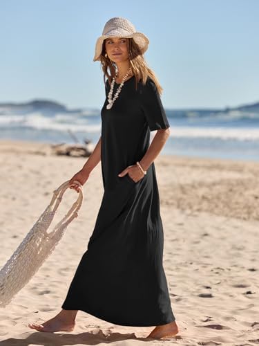 Maxi Dresses for Women 2024MEROKEETY Women's Summer Casual Short Sleeve Maxi T Shirt Dress