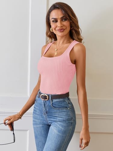 MEROKEETY Women’s Ribbed Knit Tank Tops 2025 Square Neck Sleeveless Summer Basic Shirts Sweater Vest