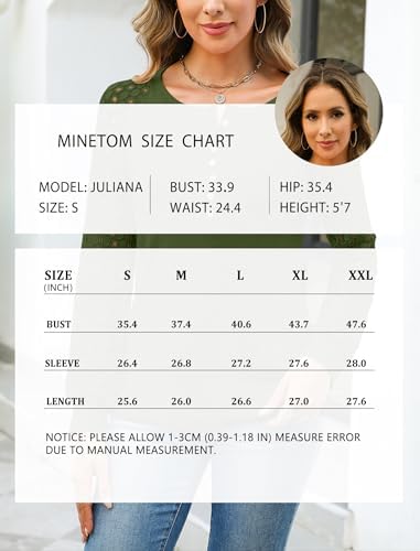 Size Chart of Minetom Women’s Lace Long Sleeve Tops long sleeve shirts for womenlong sleeve shirts for women