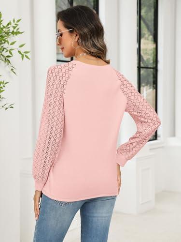 Minetom Women’s Lace Long Sleeve Tops Casual Blouses Long Sleeve Fall Clothes womens tunic topswomens tunic tops