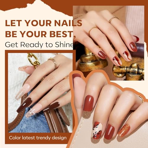 [ Safe & Nail-Friendly ] – Modelones Dark Brown Glitter Gel Nail Polish Set features healthy and 11 toxin-free ingredients. No harsh ingredients or adhesives that lead to damage nails. It’s cruelty-free, anti-chipping, low odor and skin-friendly