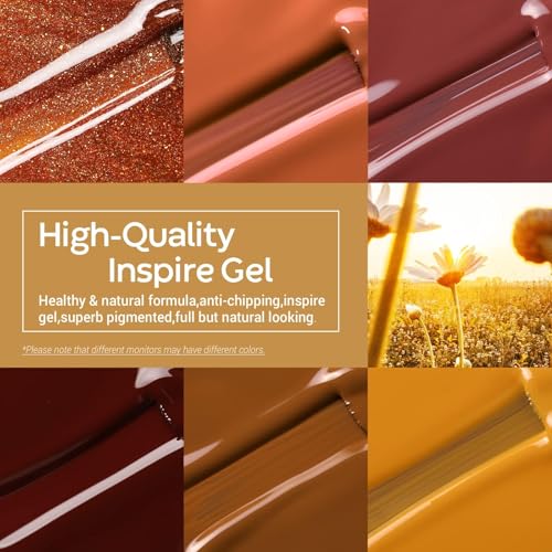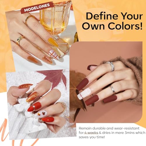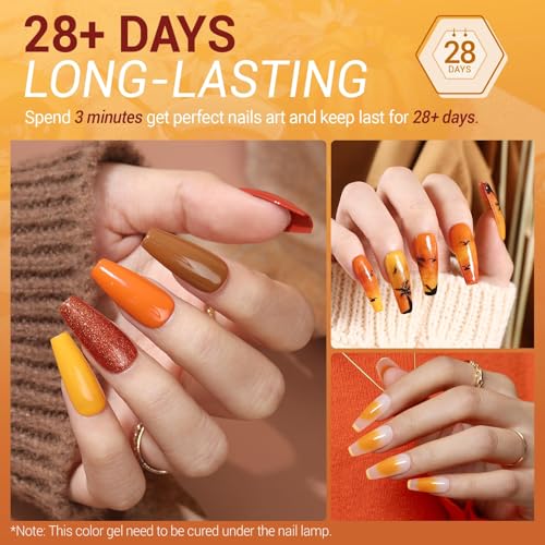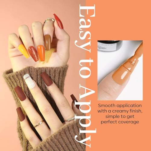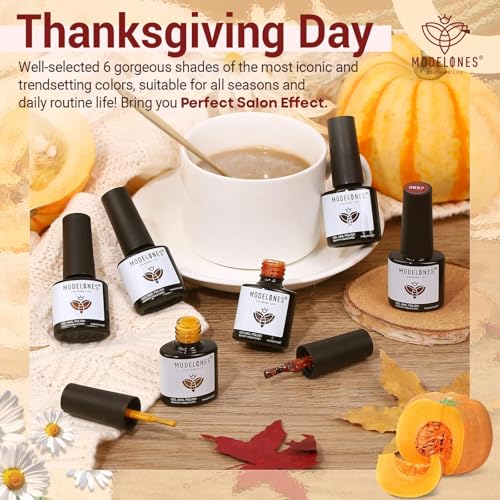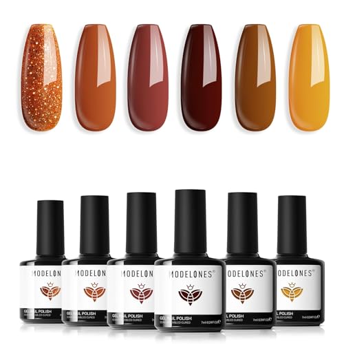 modelones Gel Nail Polish Set, 6 Fall Colors 2025 Caramel Retro Gold Yellow Glitter Dark Brown Burgundy Pumpkin Orange Gel Polish Maroon Cherry Mocha Halloween Nail Art Soak Off LED DIY Salon Gift