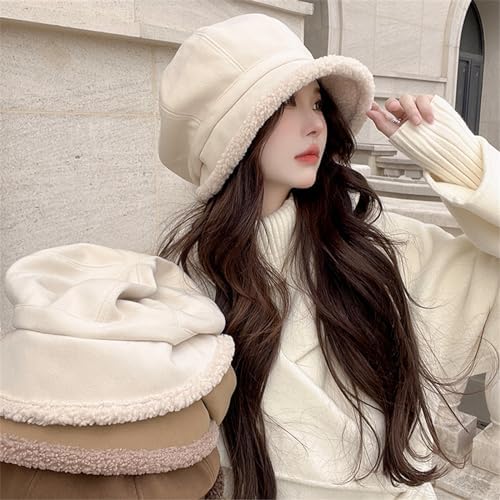 Newsboys Bucket Hat for Women Breathable Woolen Cabbie Hat Cool Girl Plush Octagonal Girl Headwear