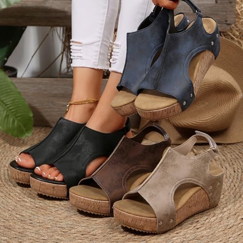 Northend Lumi Stud Wedges Shoes, Women’s Thick Sole Comfy Leather Wedge Non-slip Slides, Summer Sandals Cork Sandals