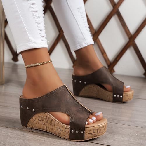 Northend Shoes for Women, Northend Lumi Stud Wedges Shoes, Cork Wedges Sandals for Women, Non-slip Comfy Orthopedic