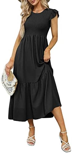OFEEFAN Women’s Casual Summer Flutter Sleeve Maxi Dress