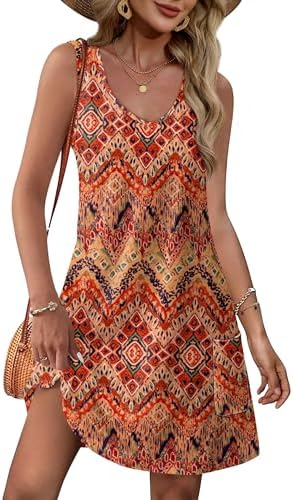 OFEEFAN Womens Summer Dresses 2025 V Neck Sleeveless Sundresses with Pockets Beach Vacation Clothes Floral/Plain