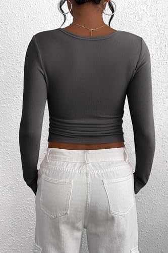 PRETTYGARDEN Women Ribbed Knit Tops Long Sleeve Basic Plain Henley T-shirts