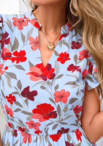 PRETTYGARDEN Floral Cap Sleeve Midi Dresses for Women V Neck Long Sundresses