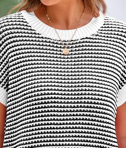PRETTYGARDEN Womens Short Sleeve Sweater Spring Summer 2025 Round Neck Striped Pullover Cap Sleeve Knit Sweater Vest Tops