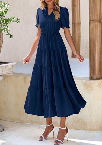 PRETTYGARDEN Women’s Summer Casual Short Sleeve V Neck Midi Dresses 2025 Spring A-line Tiered Wedding Guest Dress