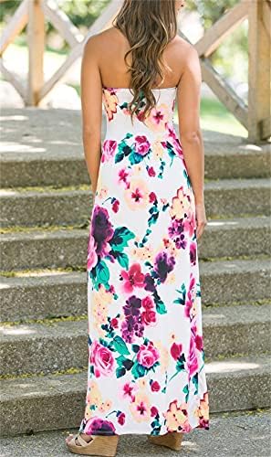 PRIMODA Womens Strapless Tube Top Maxi Dress Floral Boho Beach Dress with Pockets