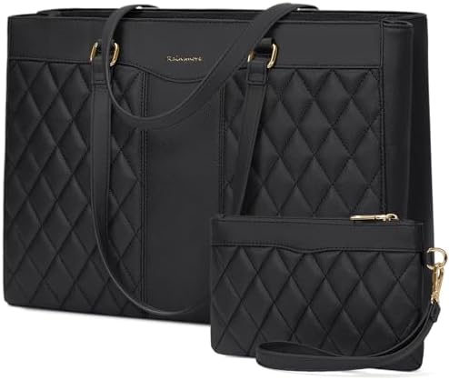 STYLISH & COMFORTABLE: The modern fashion look of this tote, with its refined gold-tone RAINSMORE logo, exudes timeless sophisticated elegance. A generously sized 11-inch handles ensure effortless carrying, whether handheld or over your shoulder, while smooth-gliding zippers, reinforced stitching, and sturdy hardware enhance the durability of this laptop purse. Designed for versatile use, it transitions perfectly from professional commutes to casual outings