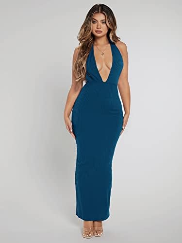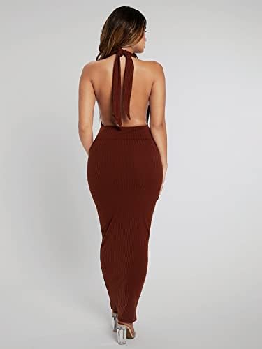 RASNEY Women’s Dress Plunging Neck Open Back Bodycon Halter Dress Dress IPADSA(Red Violet,X-Small)