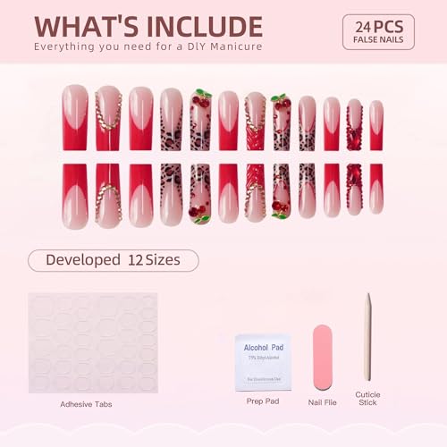 24Pcs Press on Square Nails Long Fake Nails with Nail Glue Exquisite Design for Women Nail Art Set