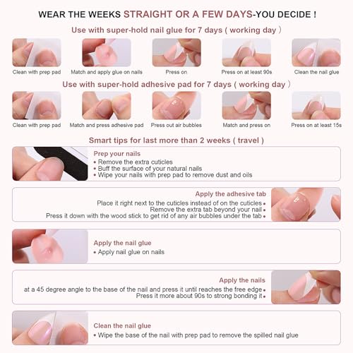 【Easy to Apply】Instead of spend a lot of time and money at nail salon, you can change your nails style in about 5 minutes anytime and anywhere.(The fake nails will stay longer if you clean your nails before use, and avoid water within the first hour of wearing)